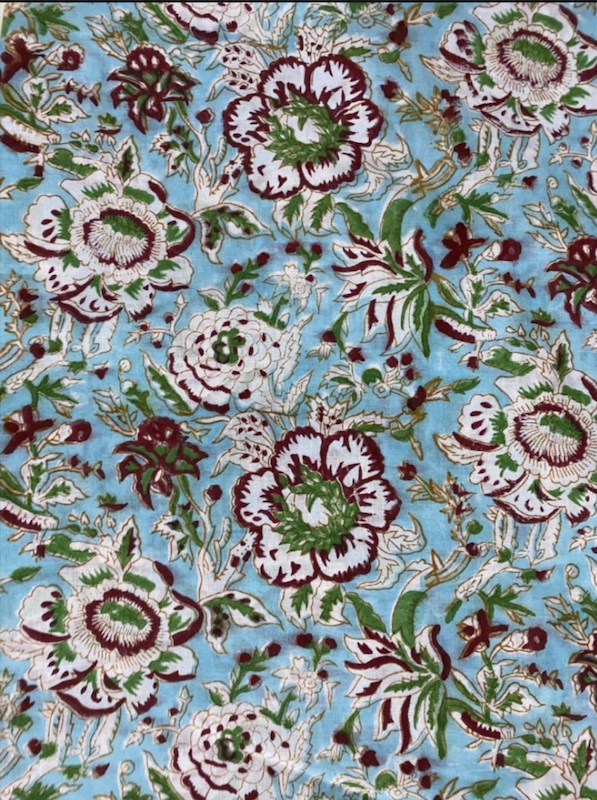 Pre-order hand block printed blue and white floral 3187