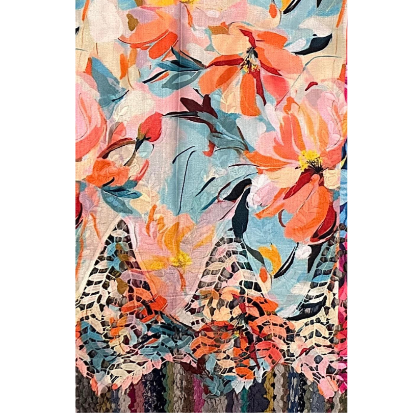 Pre-order lace embroidery printed cotton light turquoise and peach floral 9142