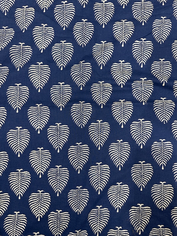 Readystock Hand block printed cotton inidgo blue and white leaves pattern 9557