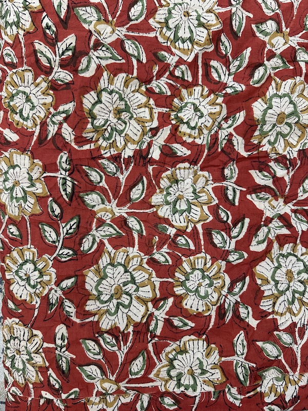Readystock Hand block printed cotton kalamkari brick and brown floral 29575