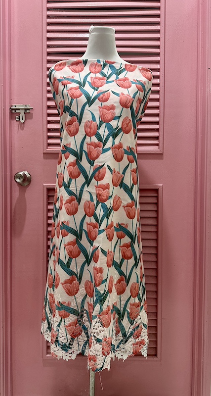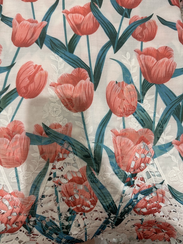 Readystock lace embroidered printed light cream and red tulips 1000141
